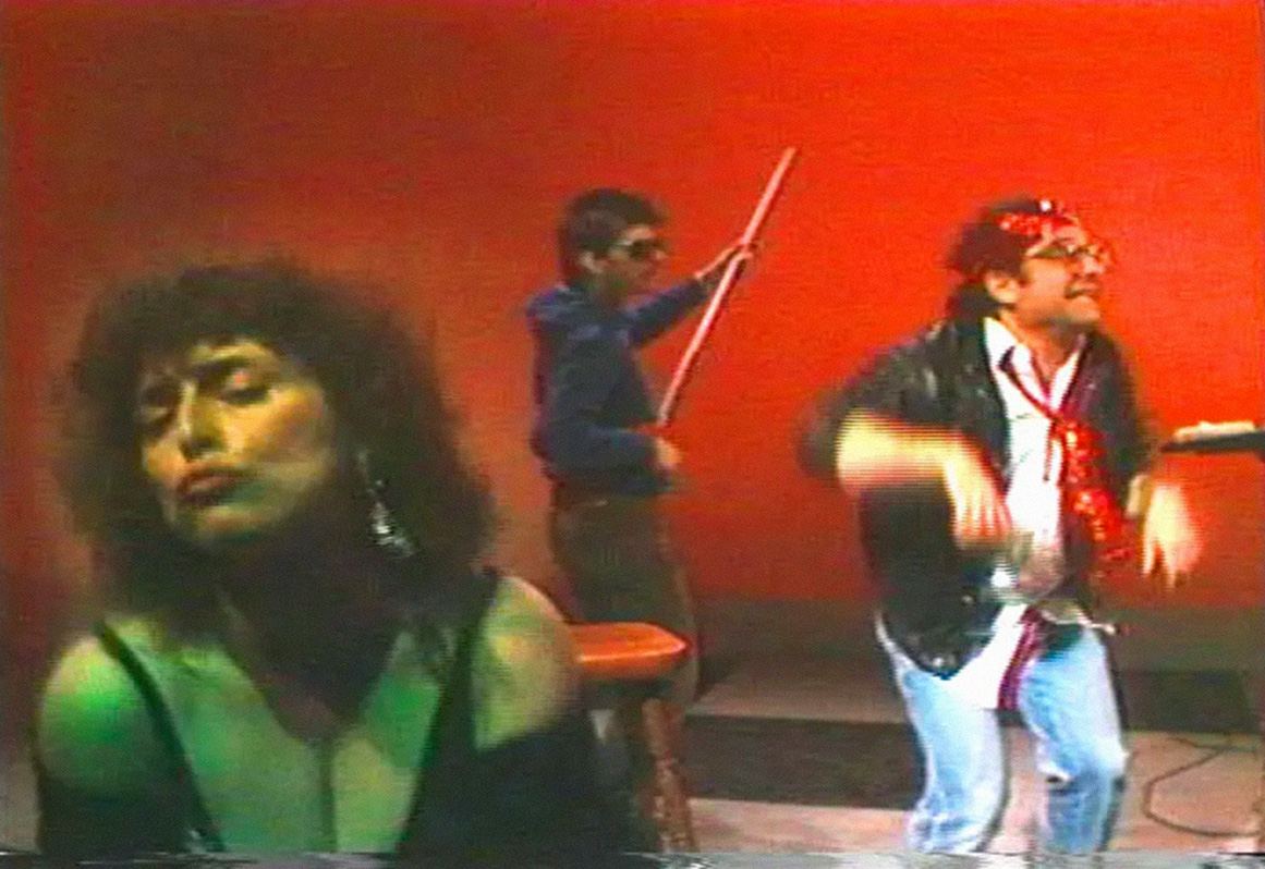 The Gossip Show was a DIY variety show hosted by the Pollocks who would invite ordinary citizens into the TV studio (often randomly recruited from shopping malls moments before their allotted time slot) in order to pry personal gossip from them. The interviews were punctuated by musical segments in which the Pollocks and friends would dance with abandon, scantily clad in signature garments: red sequin headbands, the “Red Shoes of Human Rights,” tinsel wigs, and a lot of cross-dressing. Their approach was surreal, gender-bending, sex-positive, and community-oriented. It was also philosophically and politically ahead of its time. Their motto—“Anyone can come and join us”—was sincere and radically inclusive, featuring a ragtag ensemble of people of all ages, abilities, and sexualities. Fan favourites included Paul, a cross-dressing Liberace impersonator; George Revine, an elderly, half-naked fan who proposed marriage to Natalie; and Kari and Nikki, two panic-struck high school students with towering 1980s coifs who became Winnipeg celebrities after their appearance on the show. The show itself is difficult to classify and exists somewhere between Dadaist performance art and exhibitionistic burlesque.